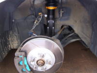 まずはボルト2本はずしてハブ側と車高調のブラケットを分離します。