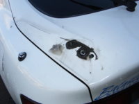 全然目立たないからいつも忘れてしまうんですが、今日こそとどめをさしてあげましょう。買ってから2年経過してますがw 完全に固着して剥がれるレベルではないのでカッターでジリジリと削り取ります。ボディを削らないように。 コンパウンドで磨けば痕跡は一切無し。パーフェクトです。