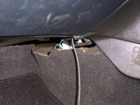 元に戻す形でカムコンのカプラーをECUにさします。これもはまるところにしかはまらないので間違えません 内装を元にもどして終了。飛び出しているのはカムコンとは関係ないオーディオのUSBケーブルです。 カムコンのケーブルは運転席側に持ってきます。手を入れて引っ張るだけ。