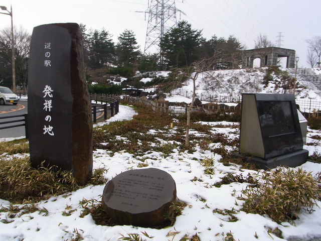 道の駅豊栄 発祥の地の石碑。向きが微妙です。なぜこの向きなのか・・・ 道の駅豊栄の石碑。ほんとになぜこの向きなのかw
