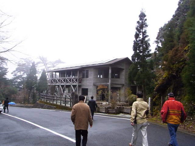 屋久島環境文化村センター。立派な建物です 館内は屋久島や屋久杉の 山々は雲の中