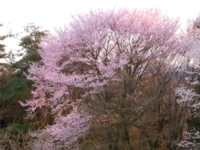 夕暮れ時の天龍峡を望む桜 不思議な夕焼け 夕日に照らされた桜